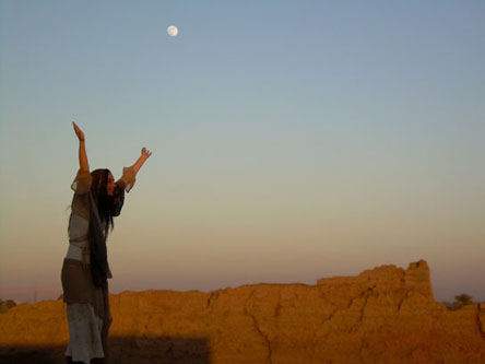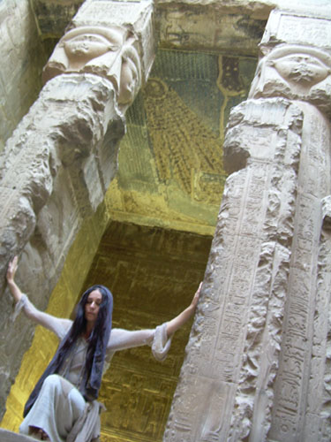 'Hurling the Moon' -Giselle atop the Dendara Temple. Photos and above Verse (c)'07 Orryelle Defenestrate-Bascule.