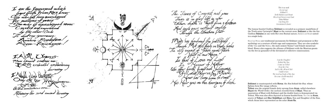The verses are hand-calligraphed, introduced and illustrated by Orryelle; with an extensive commentary by Orryelle and Nema. The text of this book is a transmission from the double-lion/ess Hrumachis Aker, through the masks and forms of Sekhmet, of the Egyptian and Grecian SphinXes, and (in the Third Chapter) of Babalon and the Beast. Voices from the 'future aeon' of Maat deliver information which intersects with the currents of the Ancient Egyptian'Book of Coming Forth by Day' (translated by E.A.Wallis Budge as The Egyptian Book of the Dead) in the present. The book is esoteric and mytho-poetical yet has socio-political implications for our times. If you have any feedback, we'd love to hear from you, as our iN-SPiRAL(ing)ink. is intended to iNSPiR(e)-A-Link. TRACK LIST: rehctaWatcher (collaboration with Twisted Subterranean Deathtrap) Kalikaye (with Samantha Starr) Cernunnos (The Wild Hunt) (with Twisted Subterranean Deathtrap & Spiney Fleshpot) Ardhanarishvara-An (with Amordios Gobblyn-Smythe Nectareous (with D.B.P.I.T., Evan Flux and Amordios) The Blind Fiddler Begotten Red Spider Black Spider Sample Track extract: Kalikaye