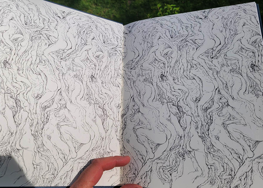 Right: Escherotic endpapers of the book
