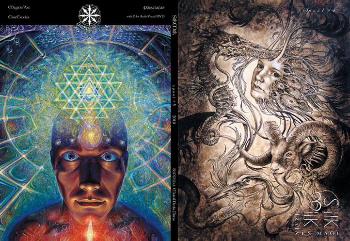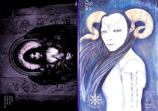 A square-bound print journal with an audio/video CD/DVD in the back cover, it presents artistic expressions in a range of mediums from musical and soundscape to film, painting, drawing, poetry and essays, all with magickal intent and/or content. It aims to give the reader/viewer/listener an overview of the diversity of creative expression available now and in the future from the