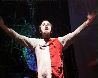 SUN/FOOL eventually loses control of his dervish dance, spins wildly off his axis and up to the front of the Stage gesticulating wildly and yelling, 'No! It's too much. It's All to much! There's too many different things going on! It's out of contrOL!! IT'S ALL TOO MUUUUCH!!!'