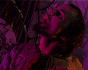 Once this is done he has calmed down a bit and sits down and tries to meditate, fitfully at first then -although still looking bent and weary- he gradually focuses and calms. Breathing and Heartbeat sounds gradually slow down, soften…
