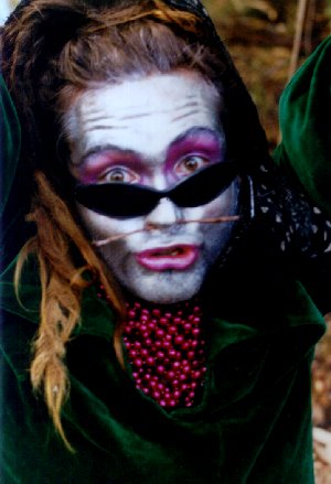 every second Eostre (95, 97, 99). ![]() This production launched the LABYRINTH CD we'd been working on intermittently since the previous Labyrinth, translating the whole journey into intricate layered elemental soundscapes. The Lyrics from this CD have now been added to the 'Labyrinth ov Verse' accessible through the dryadic Labia Gateway at the end of this page. Audio samples from the CD are also included, and ordering information. ![]() Our Labyrinths are interactive spaces in-which initiates meet different mytholological and mytho-illogical characters in different atmospheric environments as they wind their way through the maze, spiraling in to the centre where the night culminates in a final ritual performance before they are 'reborn' from this womb back into the rest of the festival. Right: Venom caught by the cameramutating in the Mutation Parlour at the Labyrinth Crossroads, while an unsuspecting patient waits outside