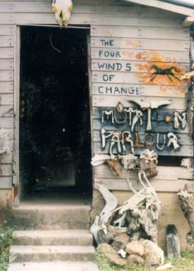 The MUTATION PARLOUR was originally a physical place, a studio for body arts. It evolved into the name of a musical/theatrical endeavour. In the LABYRINTH performance Installations, the Mutation Parlour again became a physical place, where in-it-I-ates could stop and be physically psychically or spiritually mutated on their journeys. All the elemental paths -fire/energy, air/space, earth/mass and water/time- intersected at the Mutation Parlour, the Crossroads of the Labyrinth.