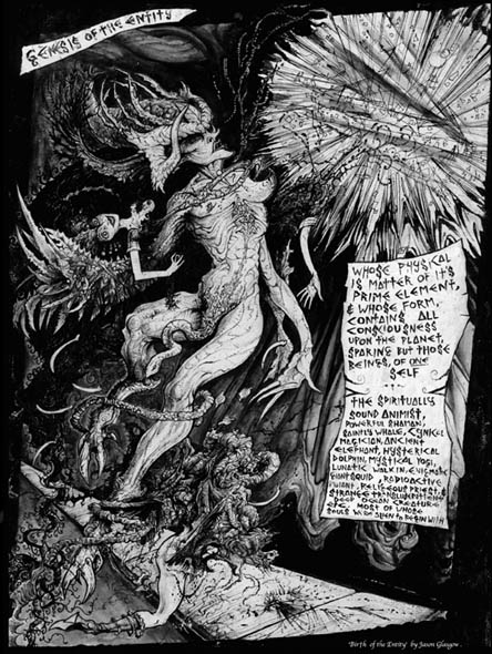 'BIRTH of the ENTITY' (click title for low-resolution web-sample) and 2 other Plates from CODEX : SZhieaom, an unfinished Graphic Novel by Jason Glasgow
