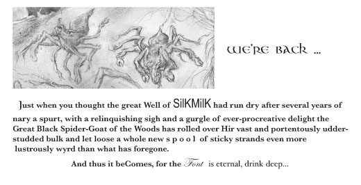 Alchemical Wedding by David Aronson 184 pages, 80 in full colour, including colour pull-out and covers 70 contributors. Background image: Fascinum Panel 4 by Iain Whittaker, from the SilKMilK 4 centrefold. Limited to 1000 hand-numbered copies . Launched on the 16th February 2010. SOLD OUT Nov.2012. Pictures from musickal and theatrickal performances at the Launch HERE VIDEO SAMPLES from the DVD: (These are lo-res web-samples only. All material on the DVD is full-screen resolution).