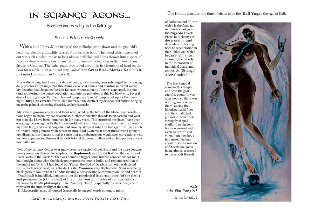 Below: The beginning of an essay on Sacrifice in the Kali Yuga by Orryelle, with paintings by Christopher Ulrich.