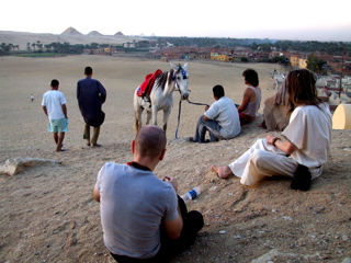 On our way back from Saqqara (most of us walked throught the desert) we stopped at a little cave on a hill just near the village from where all the pyramids could be seen in a magnificent panorama, from where we quietly watched the sun set.