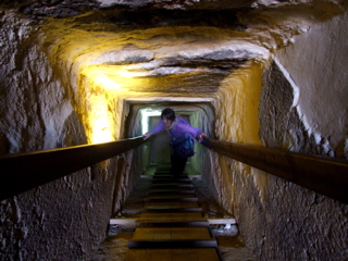 After the steep ascent emerging into the brightsunlight was dramatic- somewhat of a rebirth initself. We were informed later by Nasser -who waswaiting for us outside- that the guards had heard uschanting within and were actually somewhat freaked outby it, but didn't try to stop us. Not being such atourist mecca as Giza, it was not a heavily controlledarea.
