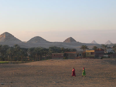 Instead we were situated on the edge of thesmall village of Abu Sir, with desert sands stretchingout from the doorstep and the magnificent Zoser steppyramid on the horizon.