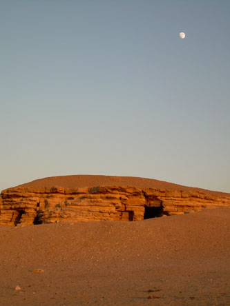 Nasser welcomed us and showed us the house where wecould stay and its adjoining temple, right on the edge of the village and the desert with the pyramids in the distance. (Photo by Tor}