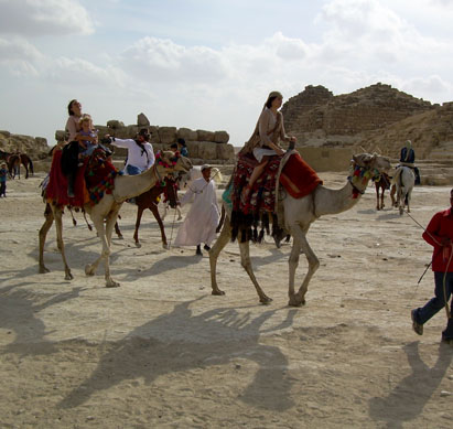 There we were presented withcamels and horses to ride to the other pyramids andtombs in the area before returning to enter the GreatPyramid.