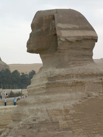 We could not linger long there as we had little timenow to reach the Sphinx before the whole Giza areaclosed for the day. Walking swiftly over the desertsands, we headed straight for that other ancientenigma of the area.