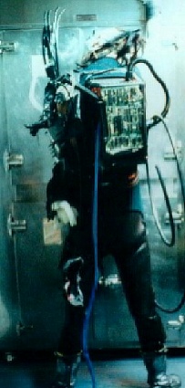 However, he brings his sword down too hard and slices off Cyberknight's (non-sword) arm, which is actually a mannequin arm covered in circuitry.